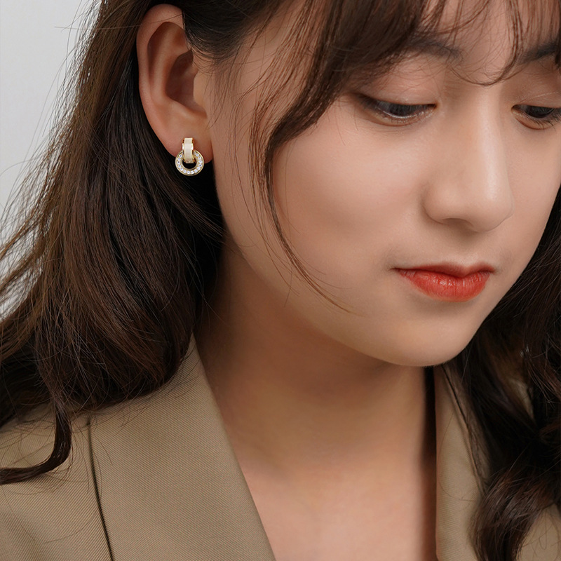 Enhance Your Look with Sparkling White Drip Oil Circular Stud Earrings